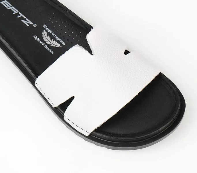 Batz Alice White női papucs Fehér színben. Felsőrésze: Valódi bőr felsőrész, belsőrésze: puha bőr belsőrész, talprésze: szintetikus talp.. Sarokmagasság: