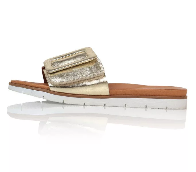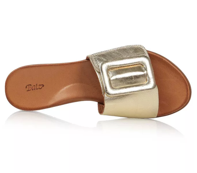 Batz Carmen Gold női papucs arany színben. Felsőrésze: Valódi bőr felsőrész, belsőrésze: puha bőr belsőrész, talprésze: szintetikus talp. Sarokmagasság: 2,5 cm
