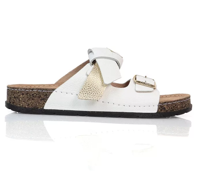 Batz Cosy stepW Arany Női papucs Arany-Fehér színben. Felsőrésze: Designer modell, belsőrésze: Extra könnyű, talprésze: rugalmas talpszerkezet. Sarokmagasság: 2,5 cm