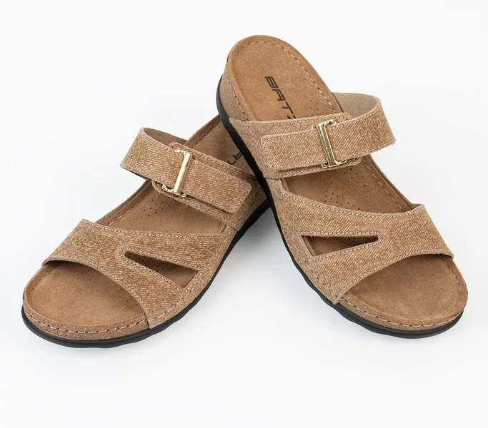 Batz Elba Nut női papucs Barna színben. Felsőrésze: Valódi bőr felsőrész, belsőrésze: puha bőr belsőrész, talprésze: szintetikus talp.. Sarokmagasság: