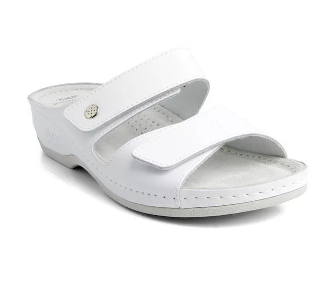 Batz FC 06 fehér női papucs Fehér színben. Felsőrésze: Valódi bőr felsőrész, belsőrésze: puha bőr belsőrész, talprésze: szintetikus talp.. Sarokmagasság: 4 cm