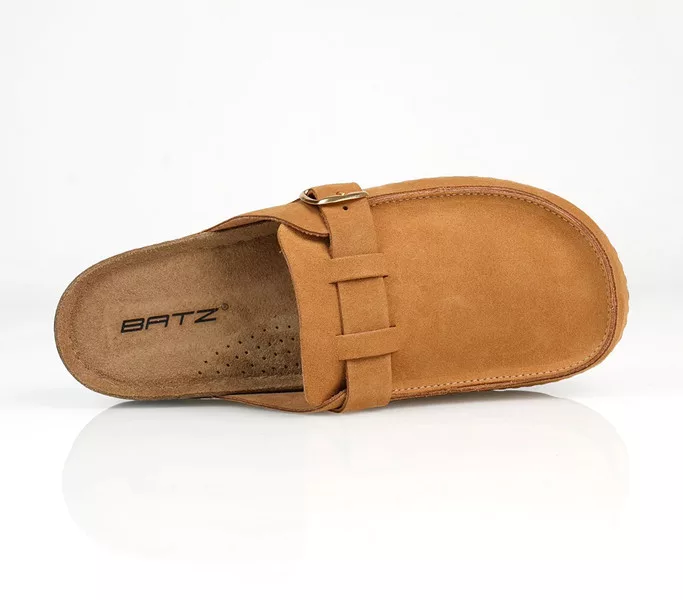 Batz Fiorella Camel női papucs Barna színben. Felsőrésze: Valódi bőr felsőrész, belsőrésze: puha bőr belsőrész, talprésze: szintetikus talp.. Sarokmagasság: