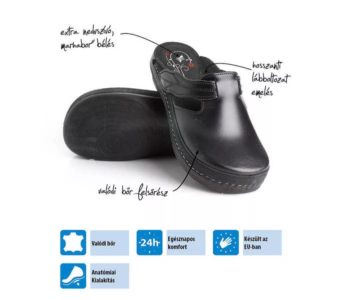 Batz Flower fekete női papucs Fekete színben. Felsőrésze: Valódi bőr felsőrész, belsőrésze: puha bőr belsőrész, talprésze: szintetikus talp.. Sarokmagasság: 4,5 cm