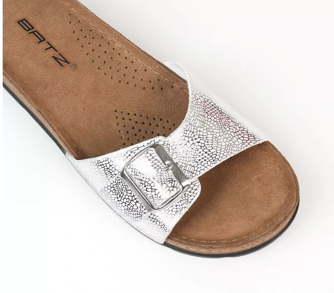 Batz Ibiza Silver női Papucs Ezüst színben. Felsőrésze: Valódi bőr felsőrész, belsőrésze: puha bőr belsőrész, talprésze: szintetikus talp.. Sarokmagasság: