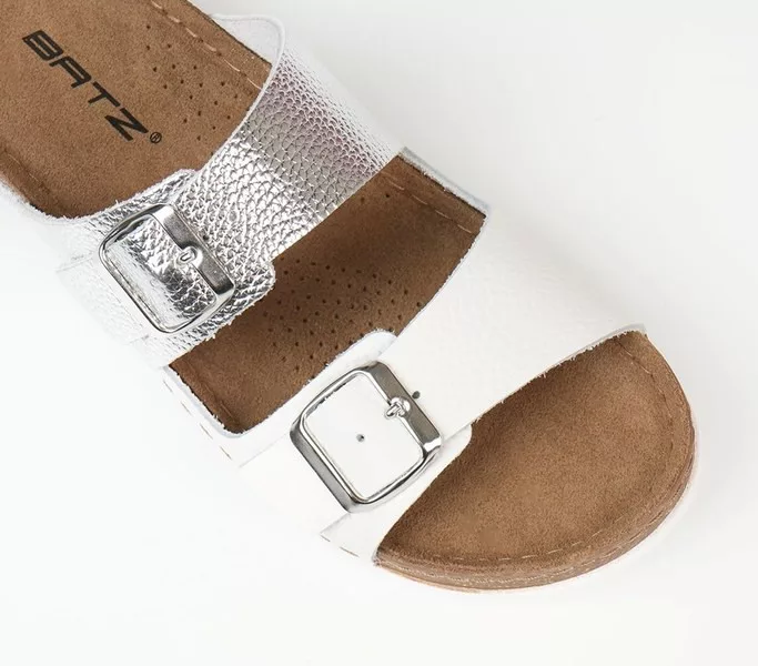 Batz Mallorca White-Si női papucs Fehér színben. Felsőrésze: Valódi bőr felsőrész, belsőrésze: puha bőr belsőrész, talprésze: szintetikus talp.. Sarokmagasság: