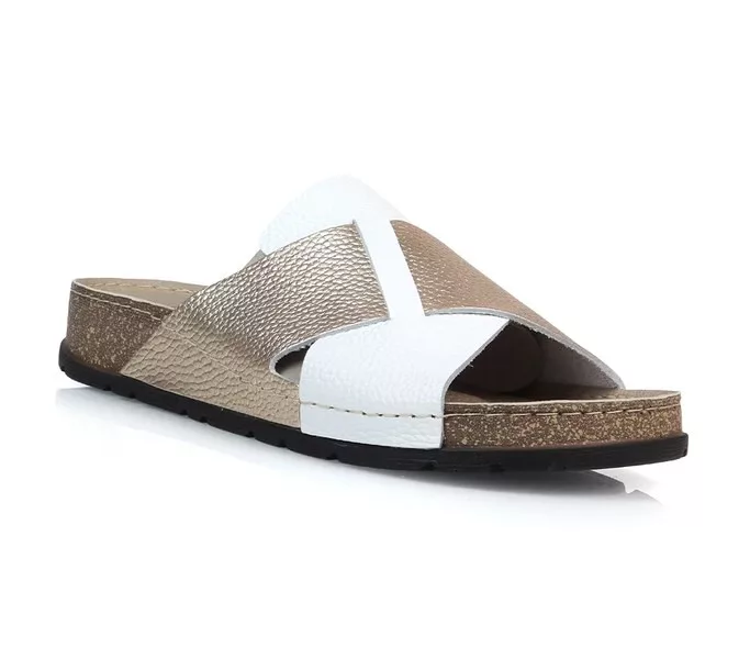 Batz Marina White Gold női papucs Fehér színben. Felsőrésze: Valódi bőr felsőrész, belsőrésze: puha bőr belsőrész, talprésze: szintetikus talp.. Sarokmagasság: