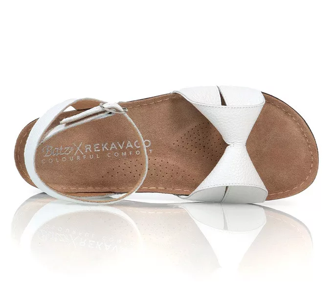 Batz Summer Day Fehér Női szandál Fehér színben. Felsőrésze: Designer modell, belsőrésze: Masnira emlékeztető csavart mintás felsőrész, talprésze: Parafához hasonló. Sarokmagasság: 2,5 cm