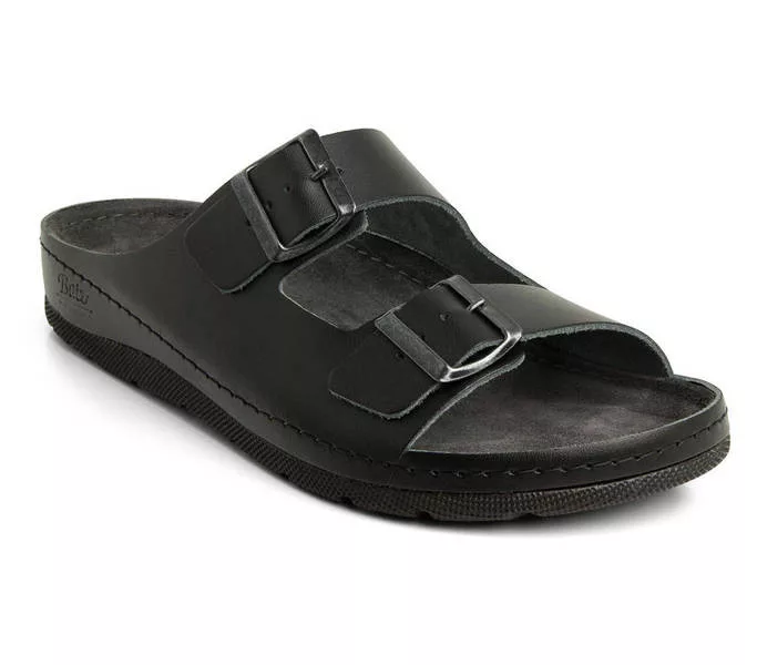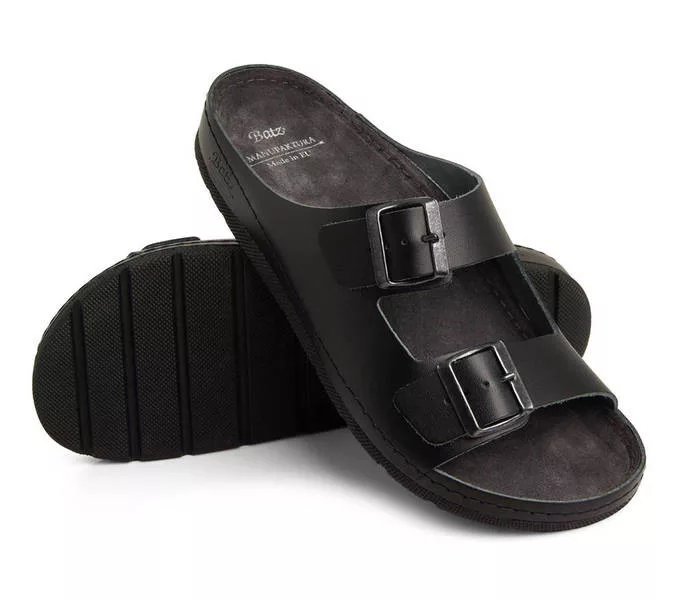 Batz Zénó Fekete férfi papucs Fekete színben. Felsőrésze: Valódi bőr felsőrész, belsőrésze: puha bőr belsőrész, talprésze: szintetikus talp.. Sarokmagasság: 3,5 cm