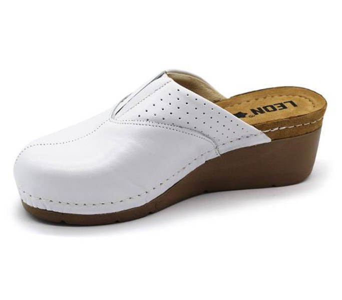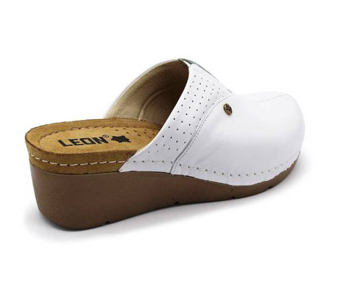 Leon Comfort 1002 Fehér női papucs Fehér színben. Felsőrésze: Bőr felső, belsőrésze: bőr belső, talprésze: szintetikus talp. Sarokmagasság: 5,5 cm