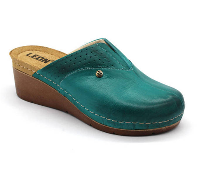 Leon Comfort 1002 Türkiz női papucs Kék színben. Felsőrésze: Bőr felső, belsőrésze: bőr belső, talprésze: szintetikus talp. Sarokmagasság: 5,5 cm