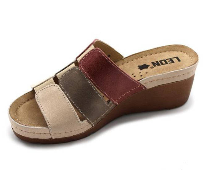 Leon Comfort 1009 Bézs/Rózsa női papucs Rózsaszín színben. Felsőrésze: Bőr felső, belsőrésze: bőr belső, talprésze: szintetikus talp. Sarokmagasság: 5,5 cm