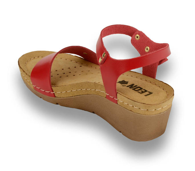 Leon Comfort 1015 Red női szandál Piros színben. Felsőrésze: Bőr felső, belsőrésze: bőr belső, talprésze: szintetikus talp. Sarokmagasság: 5,5 cm