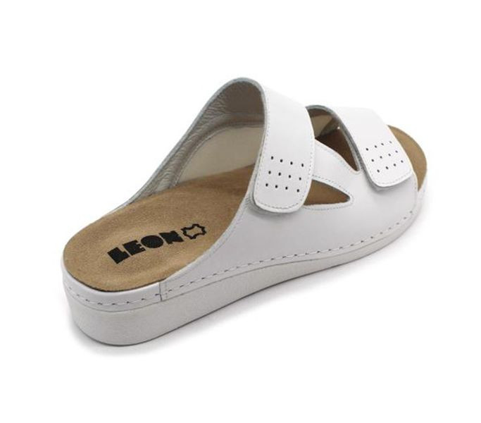 Leon Comfort 5010 Feher női papucs Fehér színben. Felsőrésze: Bőr felső, belsőrésze: bőr belső, talprésze: szintetikus talp. Sarokmagasság: 4 cm