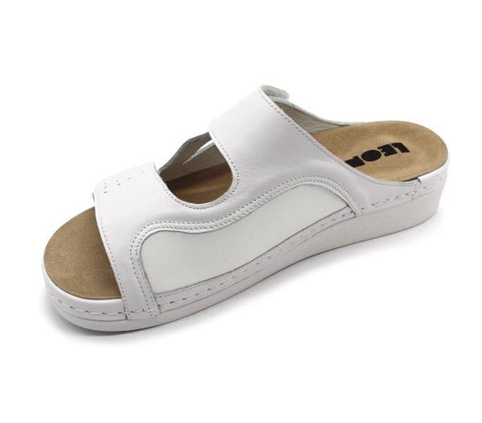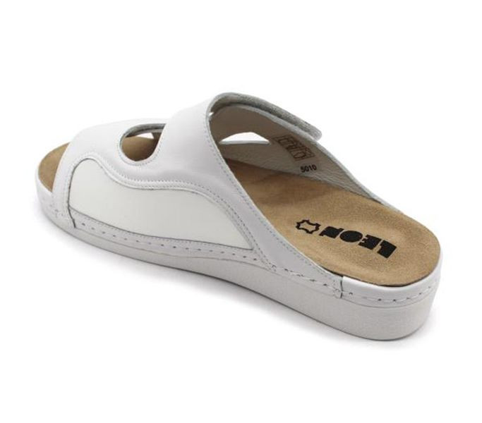 Leon Comfort 5010 Feher női papucs Fehér színben. Felsőrésze: Bőr felső, belsőrésze: bőr belső, talprésze: szintetikus talp. Sarokmagasság: 4 cm