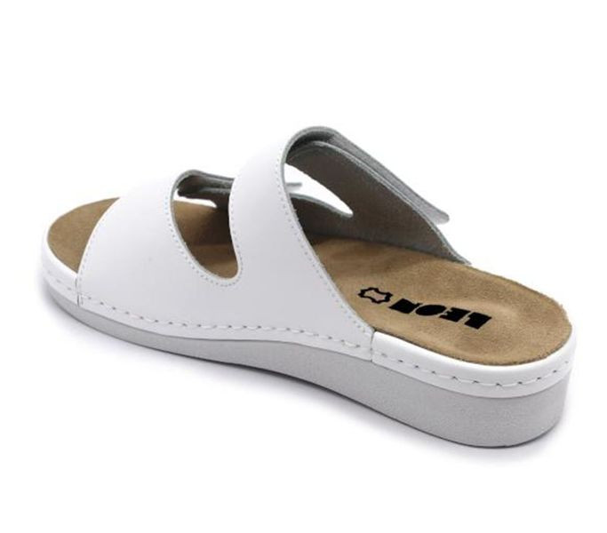 Leon Comfort 5011 Feher női papucs Fehér színben. Felsőrésze: Bőr felső, belsőrésze: bőr belső, talprésze: szintetikus talp. Sarokmagasság: 4 cm
