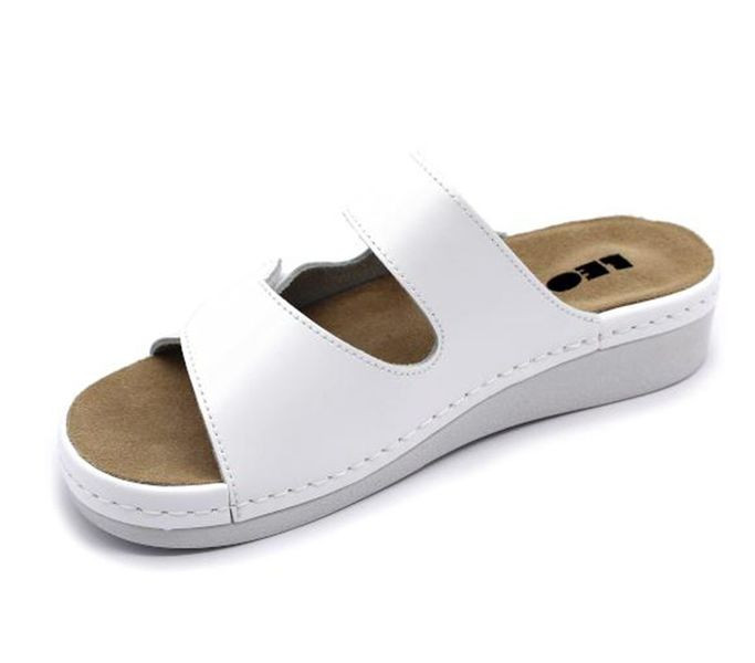 Leon Comfort 5011 Feher női papucs Fehér színben. Felsőrésze: Bőr felső, belsőrésze: bőr belső, talprésze: szintetikus talp. Sarokmagasság: 4 cm