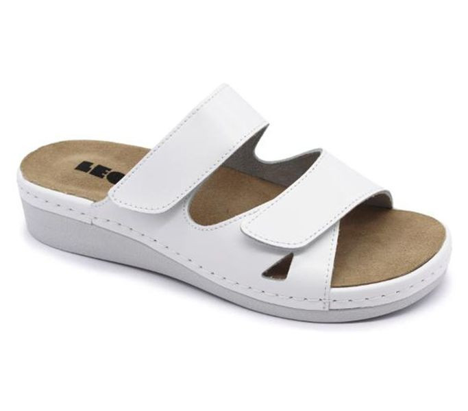 Leon Comfort 5011 Feher női papucs Fehér színben. Felsőrésze: Bőr felső, belsőrésze: bőr belső, talprésze: szintetikus talp. Sarokmagasság: 4 cm