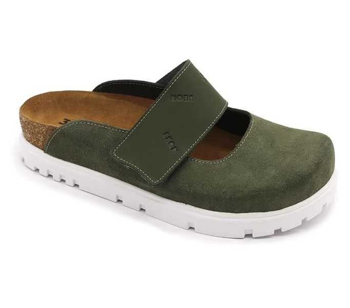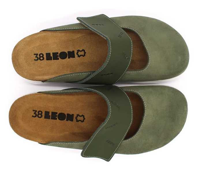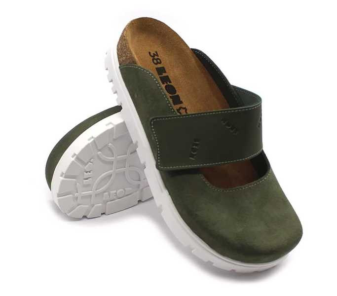 Leon Comfort 6002 zold női papucs zöld színben. Felsőrésze: Bőr felső, belsőrésze: Bőr belső, talprésze: szintetikus talp. Sarokmagasság: