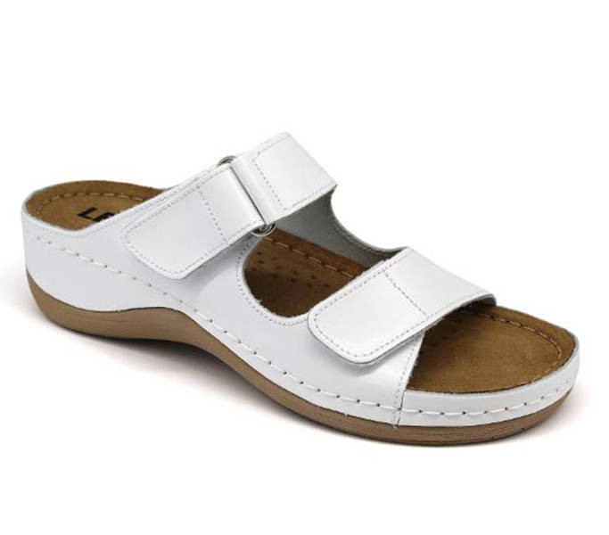 Leon Comfort 905 Fehér női papucs Fehér színben. Felsőrésze: Bőr felső, belsőrésze: bőr belső, talprésze: szintetikus talp. Sarokmagasság: 5 cm