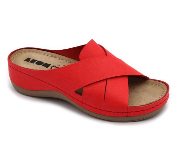 Leon Comfort 932 Piros női papucs Piros színben. Felsőrésze: Bőr felső, belsőrésze: bőr belső, talprésze: szintetikus talp. Sarokmagasság: 5 cm