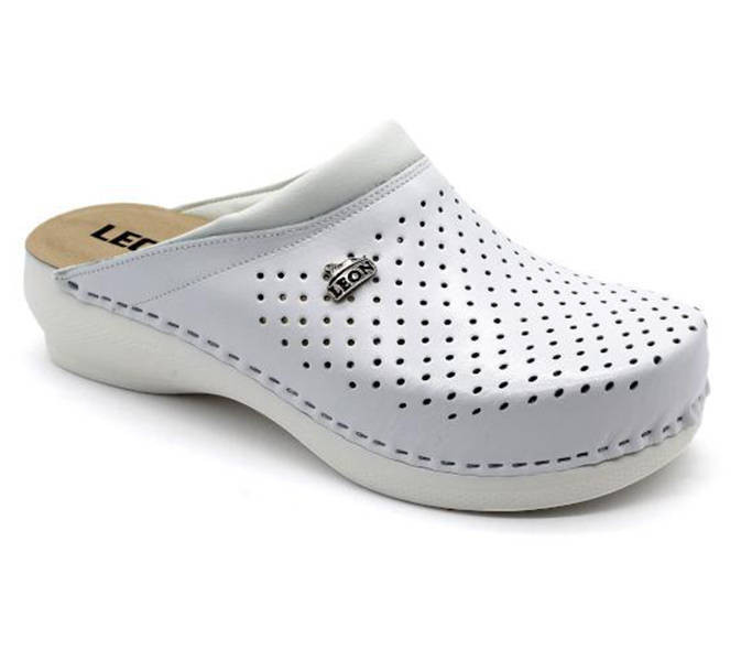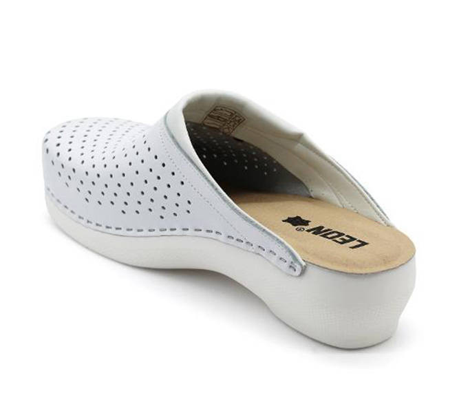 Leon Comfort PU 100 Fehér női papucs Fehér színben. Felsőrésze: Bőr felső, belsőrésze: bőr belső, talprésze: szintetikus talp. Sarokmagasság: 4,5 cm