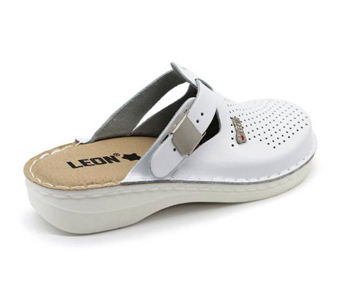 Leon Comfort V260 Fehér női papucs Fehér színben. Felsőrésze: Bőr felső, belsőrésze: bőr belső, talprésze: szintetikus talp. Sarokmagasság: 2,5 cm
