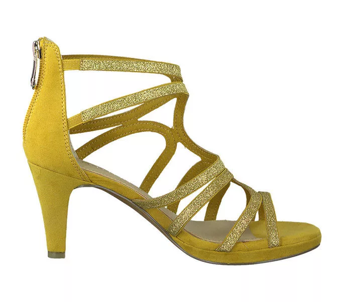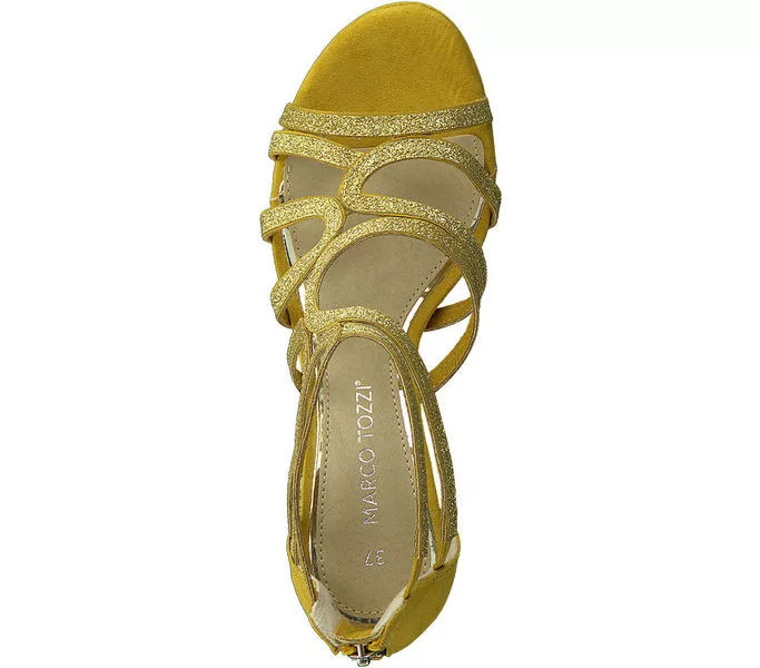 Marco Tozzi 2-28373-34 656 női szandál Sárga színben. Felsőrésze: Felső rész textil/synt, belsőrésze: belső synt/textil, talprésze: talp szintetikus. Sarokmagasság: 7