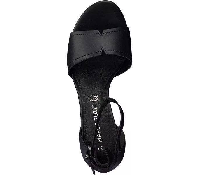 Marco Tozzi 2-28379-26 002 női Szandál Fekete színben. Felsőrésze: Bőr felsőrész, belsőrésze: bőr belsőrész, talprésze: szintetikus talp. Sarokmagasság: 6,5
