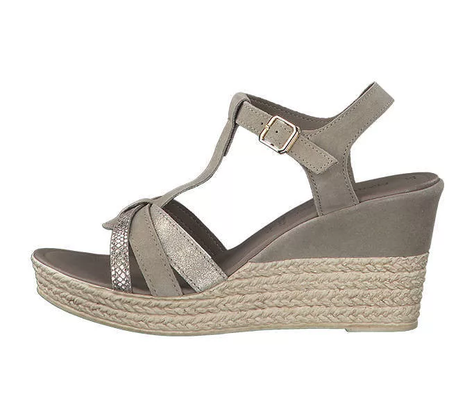Marco Tozzi 2-28387-26 721 női Szandál Szürke színben. Felsőrésze: Bőr felsőrész, belsőrésze: szint-textil belsőrész, talprésze: szintetikus talp. Sarokmagasság: 8