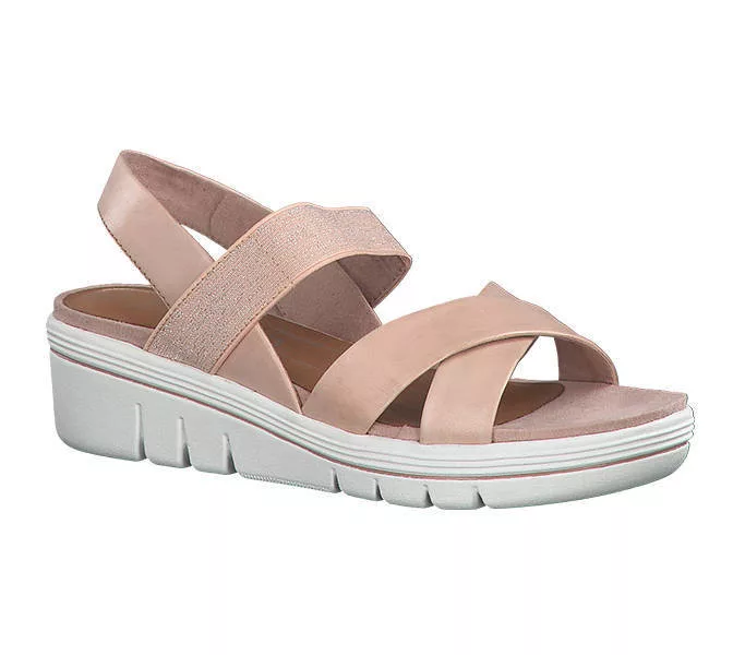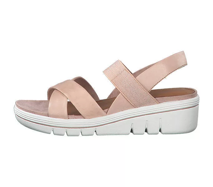 Marco Tozzi 2-28514-26 596 női Szandál Rózsaszín színben. Felsőrésze: Bőr-textil felsőrész, belsőrésze: bőr belsőrész, talprésze: szintetikus talp. Sarokmagasság: 5