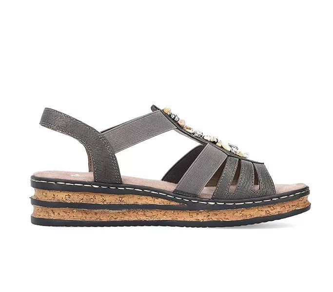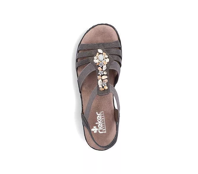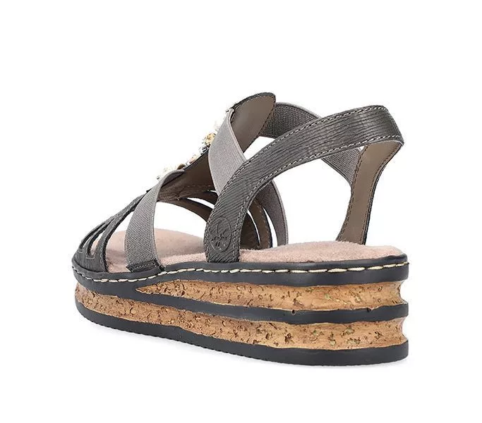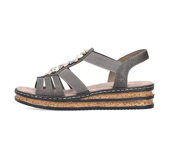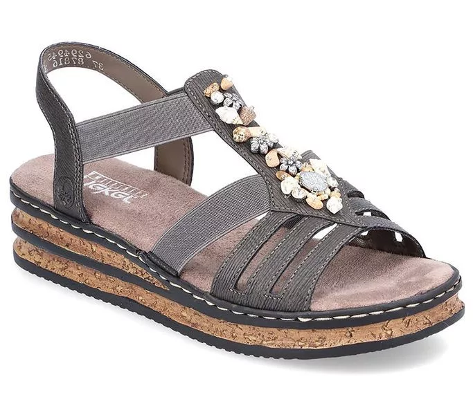 Rieker 62949-45 női szandál Szürke színben. Felsőrésze: műbőr felső, belsőrésze: szintetikus belső, talprésze: szintetikus talp. Sarokmagasság: