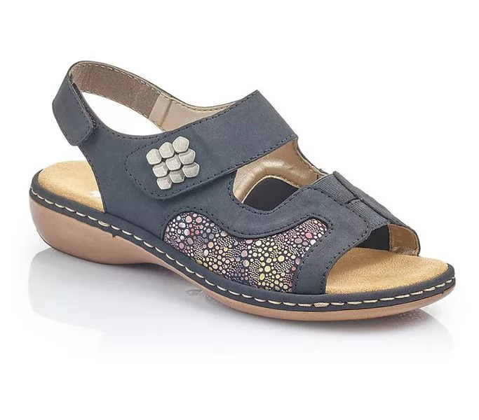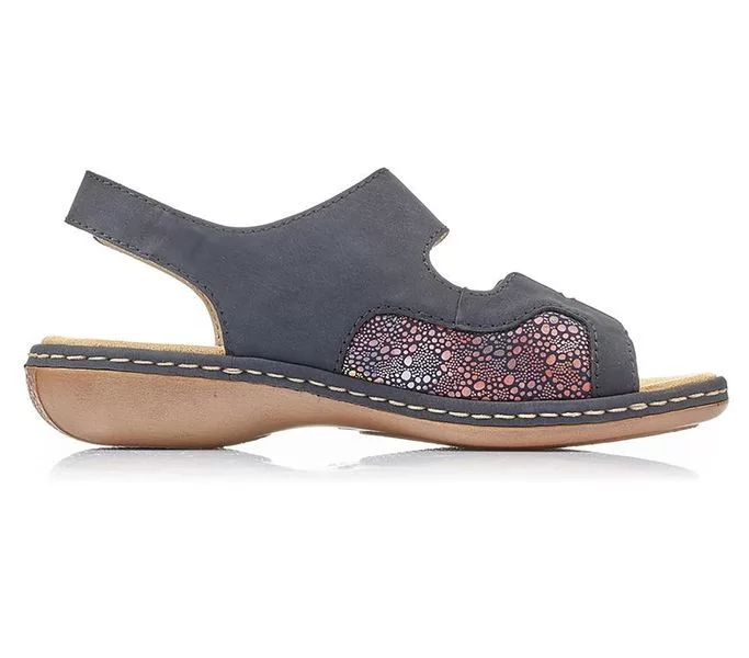 Rieker 65989-14 női szandál Kék színben. Felsőrésze: műbőr felső, belsőrésze: szintetikus belső, talprésze: szintetikus talp. Sarokmagasság: