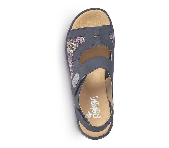 Rieker 65989-14 női szandál Kék színben. Felsőrésze: műbőr felső, belsőrésze: szintetikus belső, talprésze: szintetikus talp. Sarokmagasság: