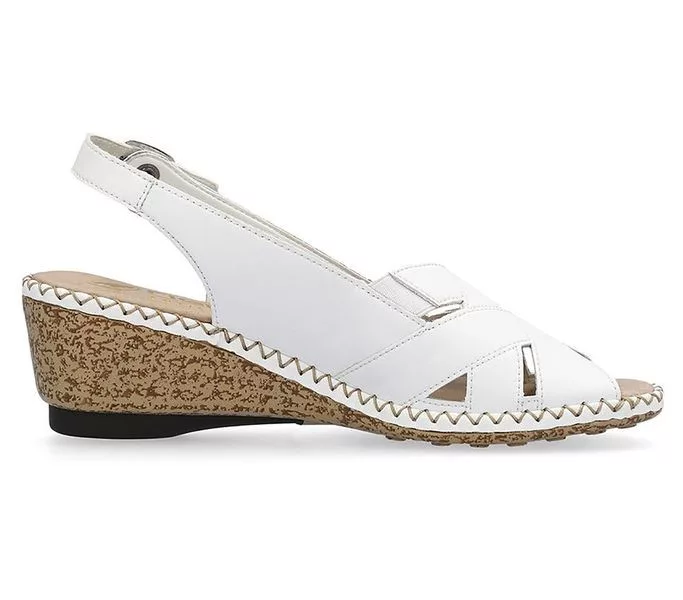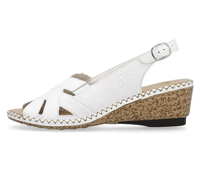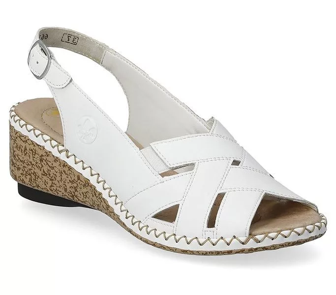 Rieker 66189-80 női szandál Fehér színben. Felsőrésze: bőr felső, belsőrésze: szintetikus belső, talprésze: szintetikus talp. Sarokmagasság: