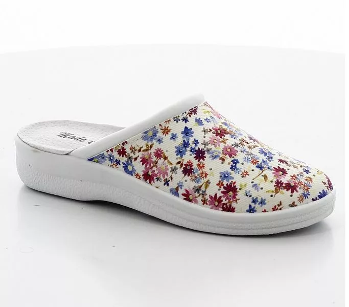 Silva gyógypapucs 1500-fiorato2 női papucs fehér színben. Felsőrésze: bőr felső, belsőrésze: bőr belső, talprésze: szintetikus talp. Sarokmagasság: 4 cm
