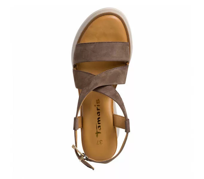 Tamaris 1-28017-36 304 női Szandál Barna színben. Felsőrésze: Felsőrész: bőr, belsőrésze: belső: bőr, talprésze: talp: szintetikus. Sarokmagasság: 8,5 cm