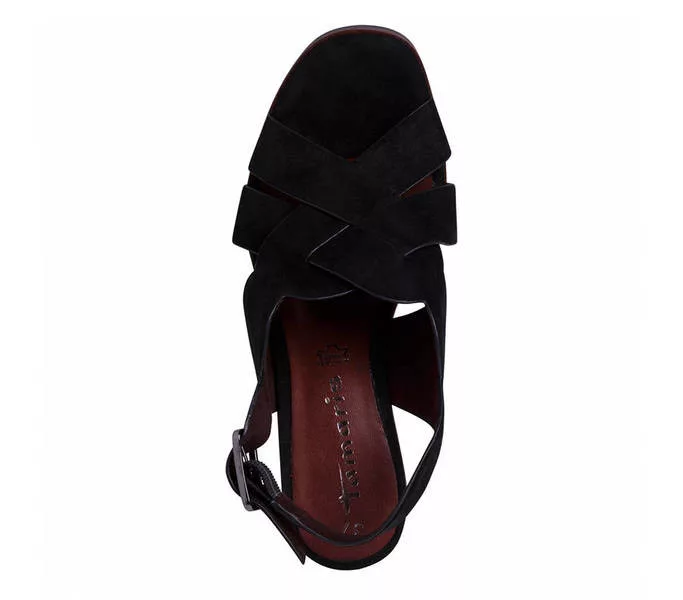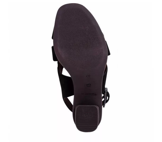 Tamaris 1-28020-26 001 női Szandál Fekete színben. Felsőrésze: Felsőrész: bőr, belsőrésze: belső: textil, talprésze: talp: szintetikus. Sarokmagasság: 7,5 cm