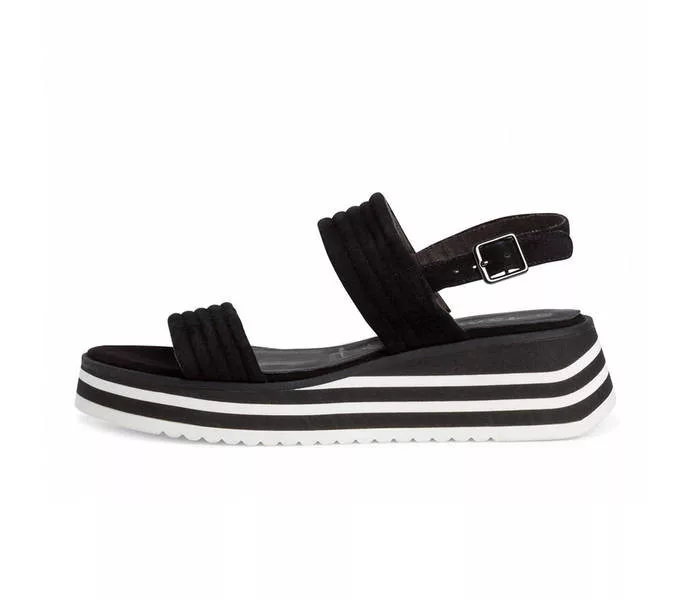 Tamaris 1-28029-36 001 női Szandál Fekete színben. Felsőrésze: Felsőrész: bőr, belsőrésze: belső: textil, talprésze: talp: szintetikus. Sarokmagasság: 6 cm