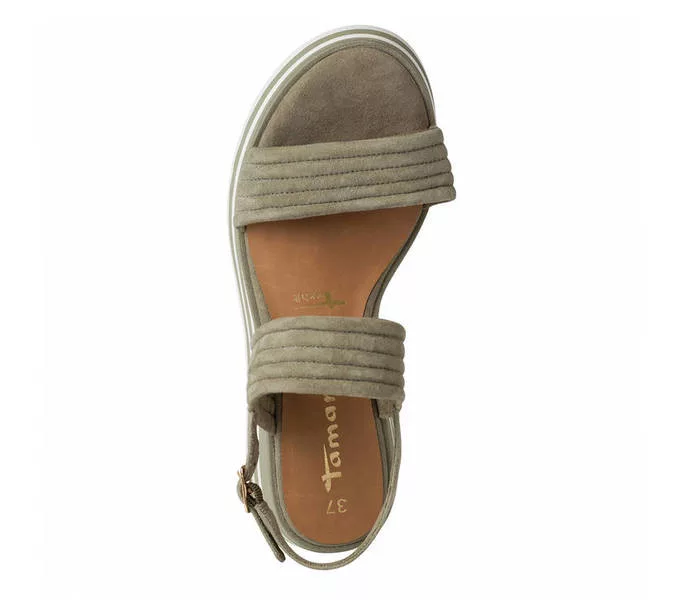 Tamaris 1-28029-36 763 női Szandál Zöld színben. Felsőrésze: Felsőrész: bőr, belsőrésze: belső: textil, talprésze: talp: szintetikus. Sarokmagasság: 6 cm