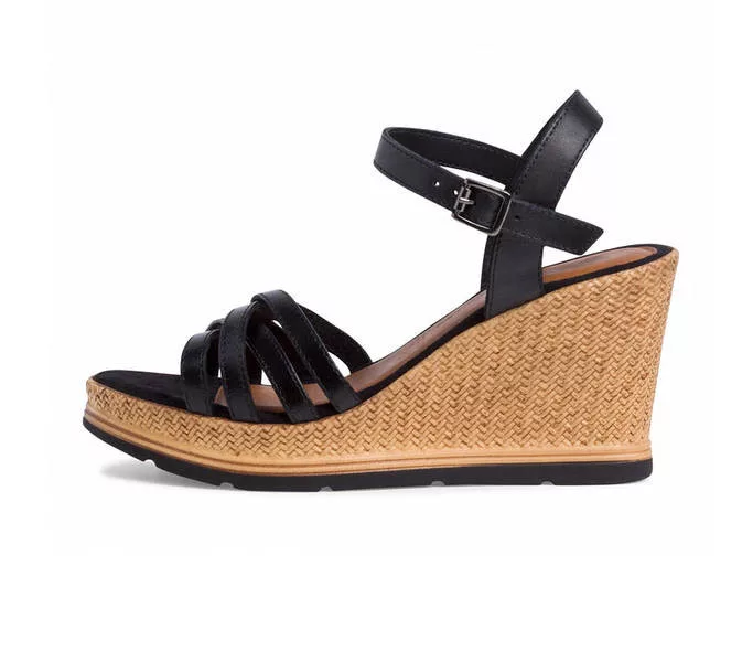 Tamaris 1-28042-26 001 női Szandál Fekete színben. Felsőrésze: Felsőrész: bőr, belsőrésze: belső: szintetikus, talprésze: talp: szintetikus. Sarokmagasság: 9 cm
