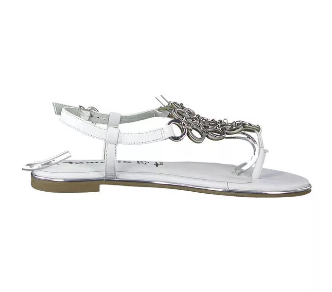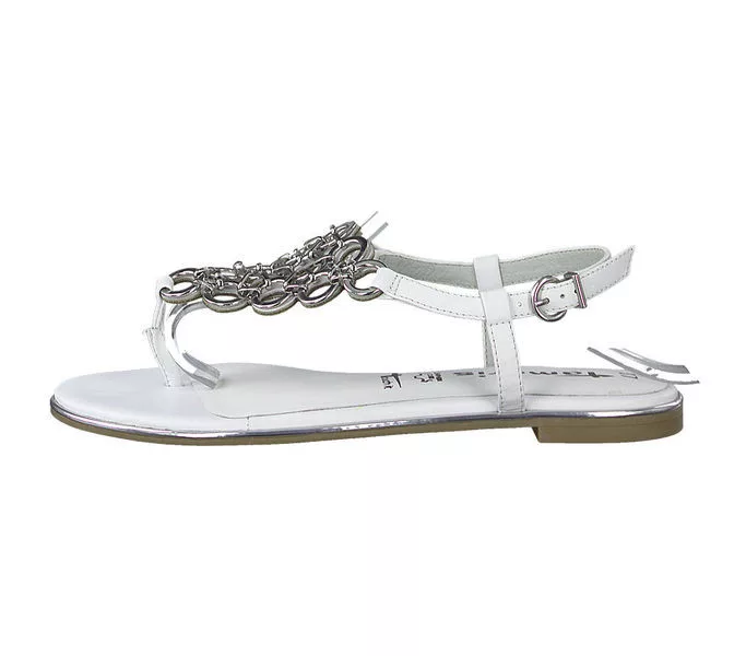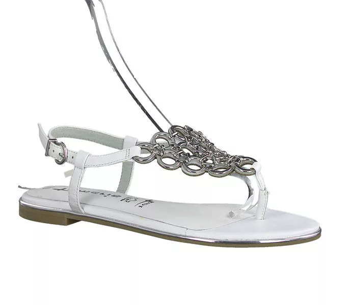 Tamaris 1-28067-34 100 női szandál Fehér színben. Felsőrésze: bőr felső, belsőrésze: bőr/textil belső, talprésze: szintetikus talp. Sarokmagasság: 1
