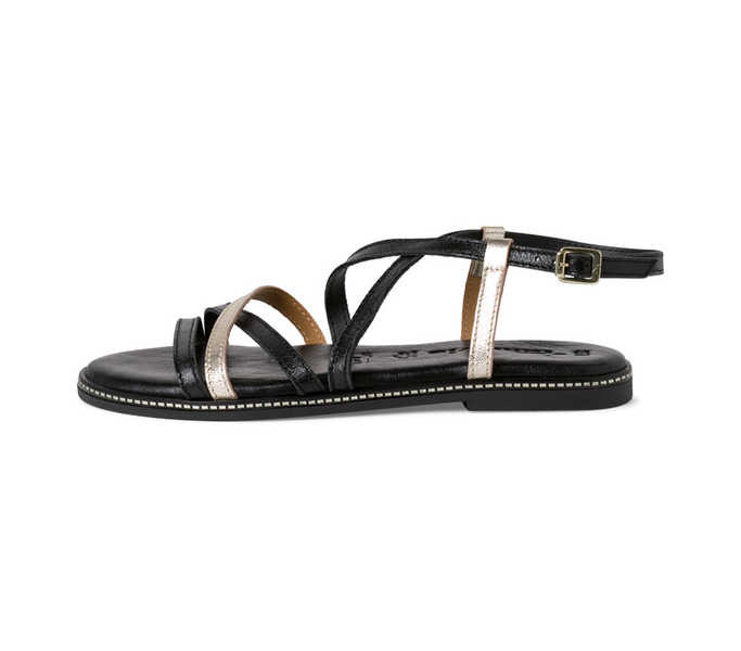 Tamaris 1-28121-28 098 női Szandál Fekete színben. Felsőrésze: Bőr felső, belsőrésze: Szintetikus belső, talprésze: Szintetikus talp. Sarokmagasság: 1,5 cm