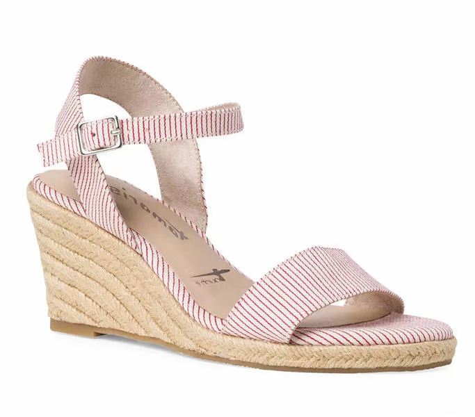 Tamaris 1-28300-26 541 női Szandál Piros színben. Felsőrésze: Felsőrész: textil, belsőrésze: belső: textil, talprésze: talp: szintetikus. Sarokmagasság: 7,5 cm