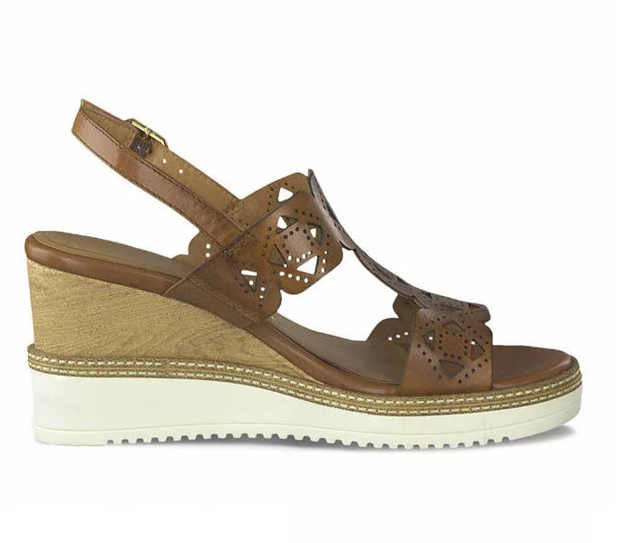 Tamaris 1-28332-26 305 női Szandál Barna színben. Felsőrésze: Felsőrész: bőr, belsőrésze: belső: szintetikus, talprésze: talp: szintetikus. Sarokmagasság: 7,5 cm