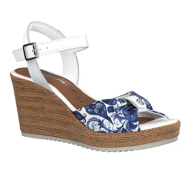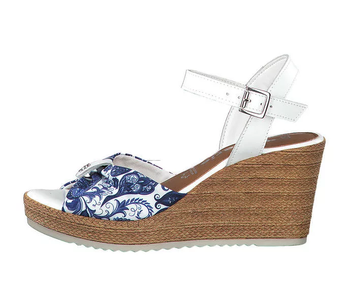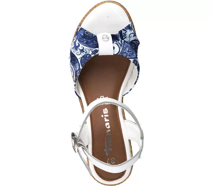 Tamaris 1-28341-24 280 női szandál Fehér színben. Felsőrésze: bőr-synt-textil felső, belsőrésze: synt-textil belső, talprésze: szintetikus talp. Sarokmagasság: 8