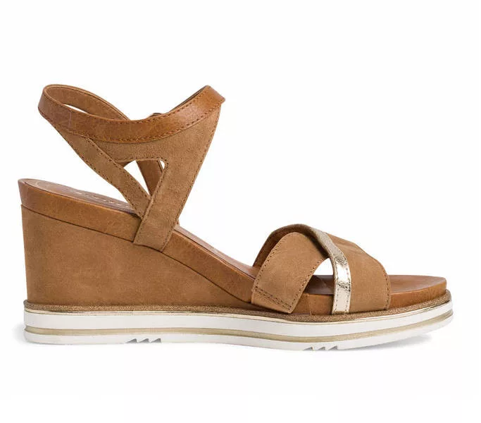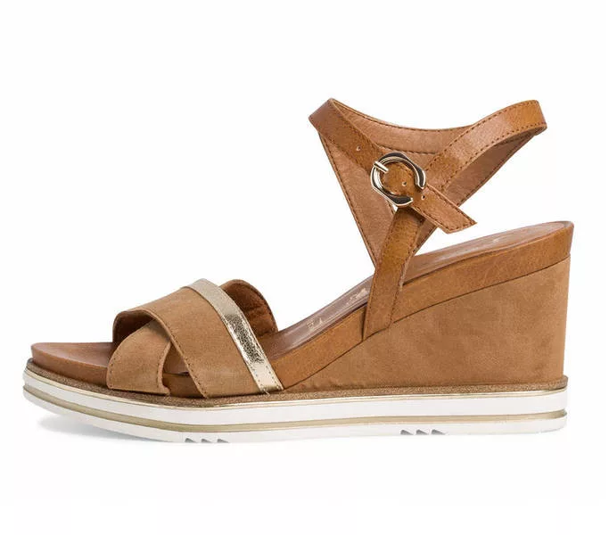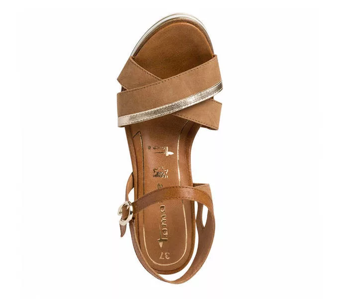Tamaris 1-28348-26 330 női Szandál Barna színben. Felsőrésze: Felsőrész: bőr és szintetikus, belsőrésze: belső: textil és szintetikus, talprésze: talp: szintetikus. Sarokmagasság: 7,5 cm