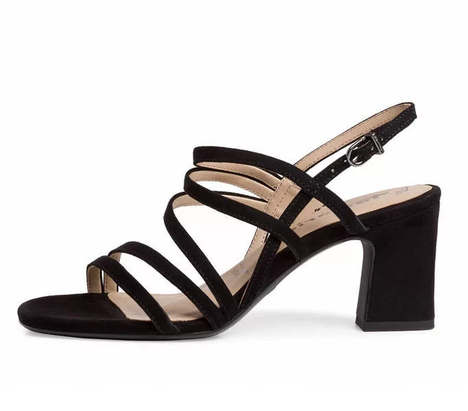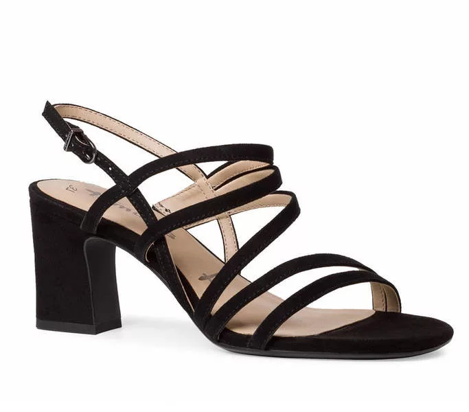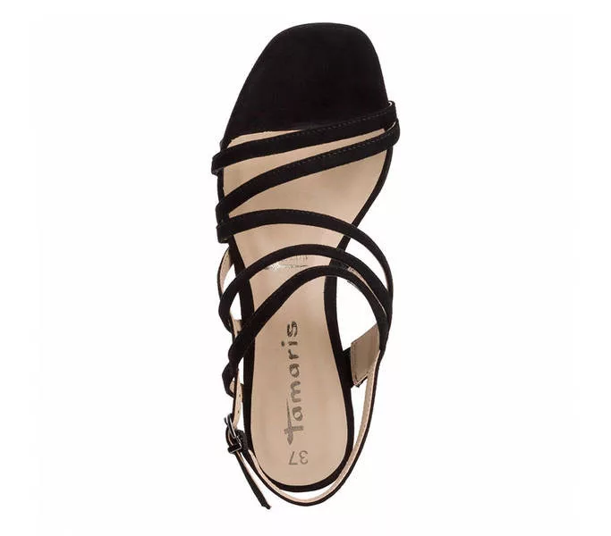 Tamaris 1-28353-26 004 női Szandál Fekete színben. Felsőrésze: Felsőrész: textil, belsőrésze: belső: szintetikus, talprésze: talp: szintetikus. Sarokmagasság: 7,5 cm
