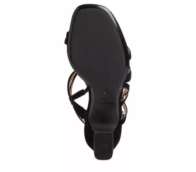 Tamaris 1-28353-26 004 női Szandál Fekete színben. Felsőrésze: Felsőrész: textil, belsőrésze: belső: szintetikus, talprésze: talp: szintetikus. Sarokmagasság: 7,5 cm