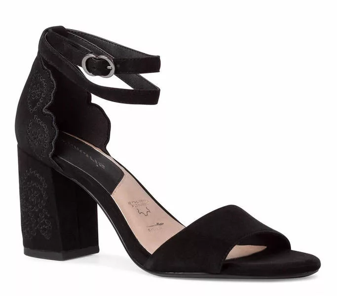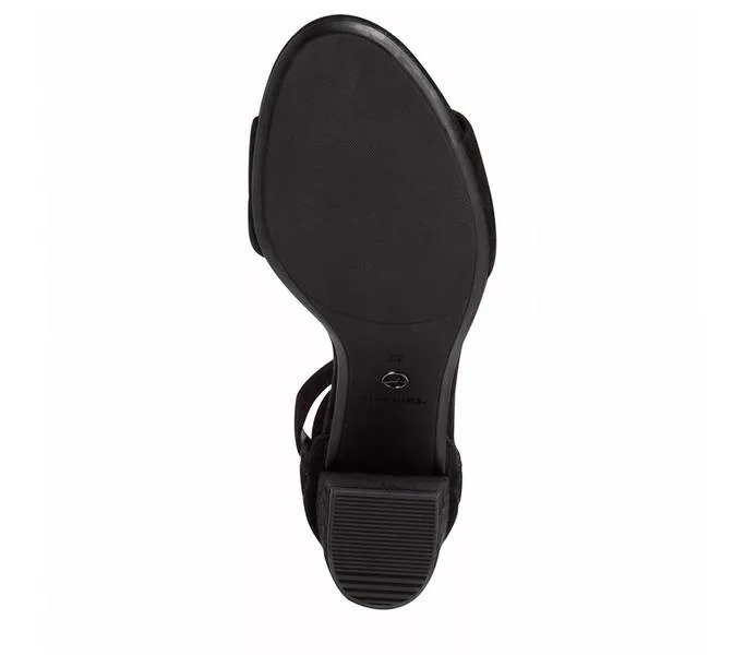 Tamaris 1-28390-26 001 női Szandál Fekete színben. Felsőrésze: Felsőrész: bőr, belsőrésze: belső: textil és szintetikus, talprésze: talp: szintetikus. Sarokmagasság: 8,5 cm
