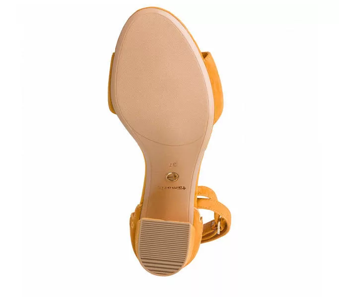 Tamaris 1-28390-26 609 női Szandál Sárga színben. Felsőrésze: Felsőrész: bőr, belsőrésze: belső: textil és szintetikus, talprésze: talp: szintetikus. Sarokmagasság: 8,5 cm